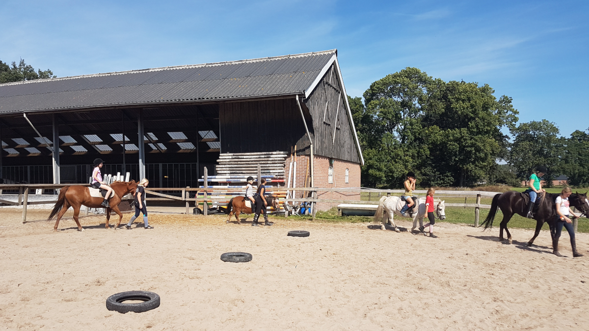 Het is ook mogelijk om patatjes te eten. Jullie gaan dan geen pannenkoeken bakken maar een pony poetsen, terwijl de andere groep kinderen aan het ponyrijden is.